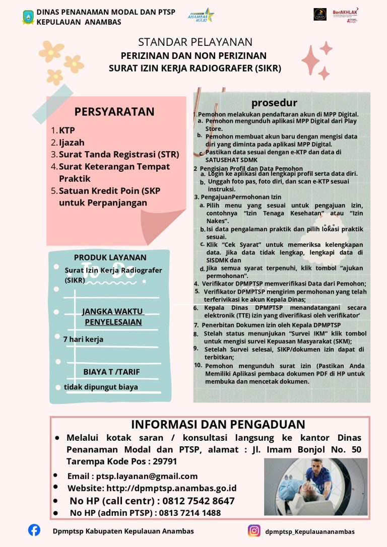 STANDAR PELAYANAN PERIZINAN DAN NON PERIZINAN SURAT IZIN KERJA RADIOGRAFER | |