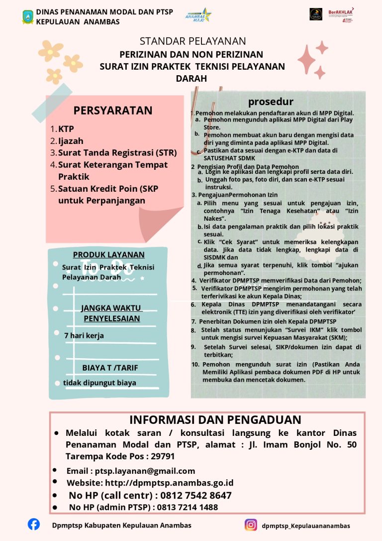 STANDAR PELAYANAN PERIZINAN DAN NON PERIZINAN SURAT IZIN PRAKTIK TENAGA TEKNIS KEFARMASIAN | |