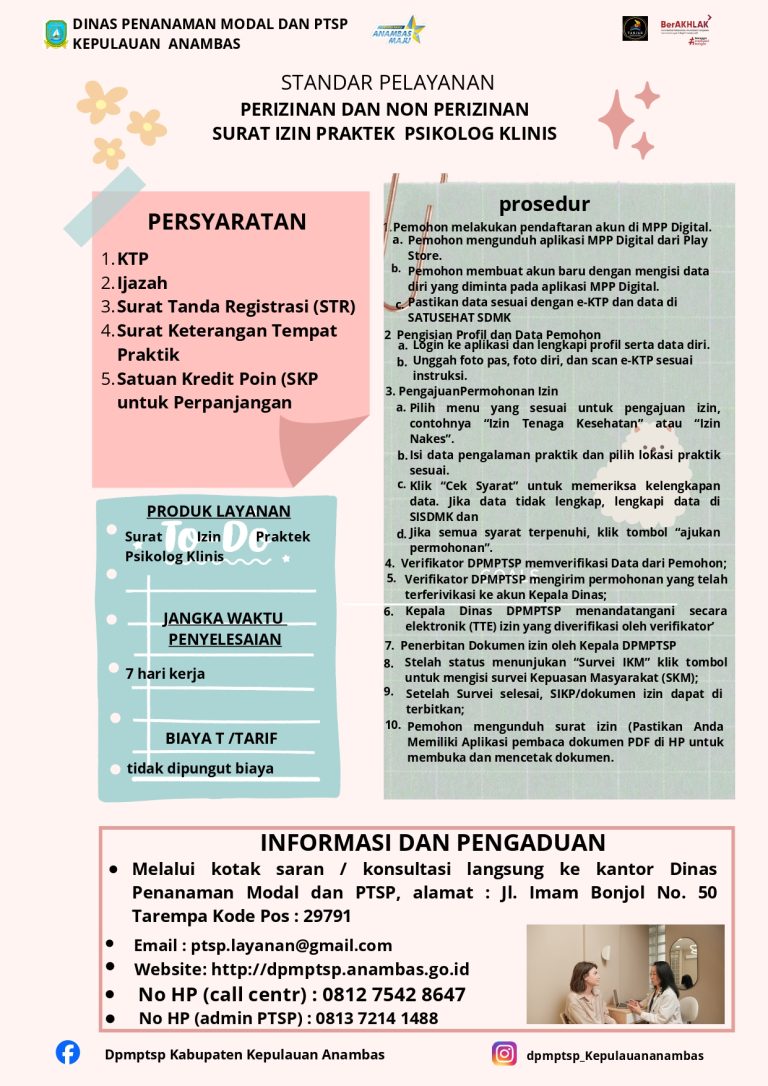 STANDAR PELAYANAN PERIZINAN DAN NON PERIZINAN IZIN OPERASIONAL KLINIK | |