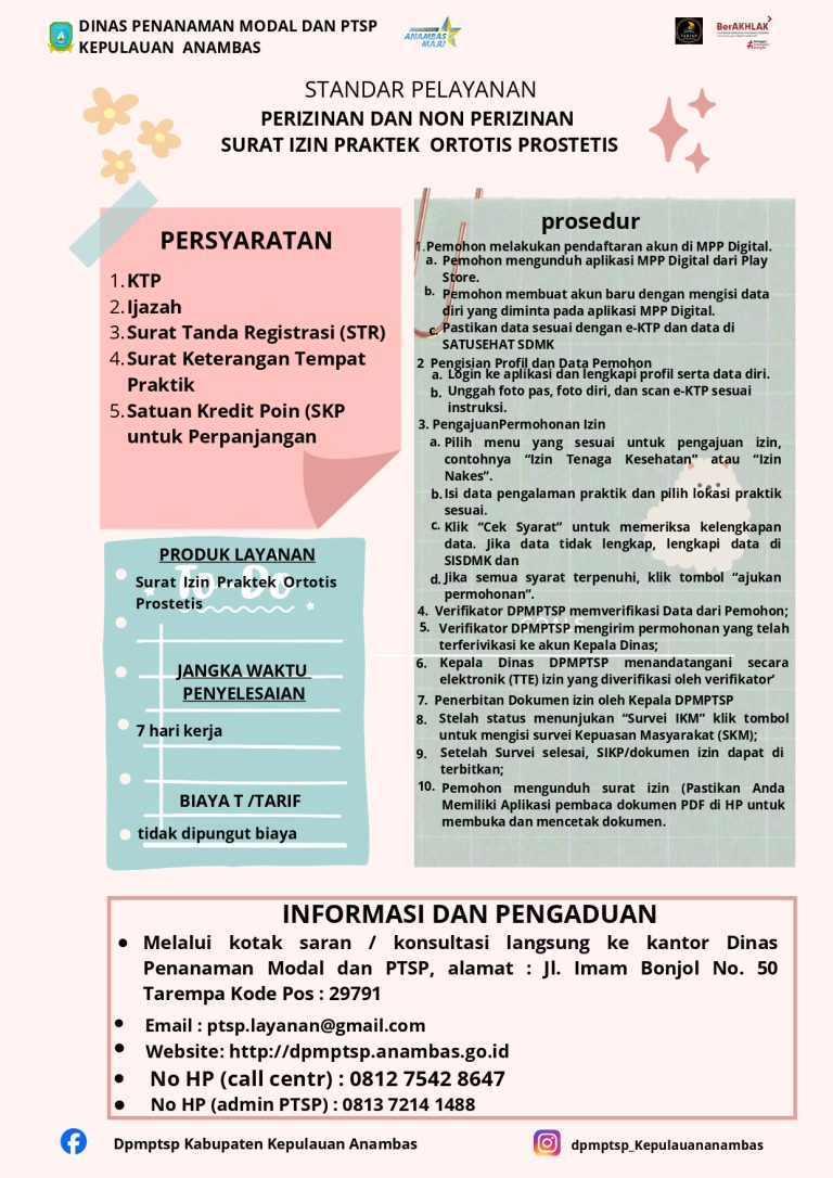 STANDAR PELAYANAN PERIZINAN DAN NON PERIZINAN SURAT IZIN PRAKTIK PENATA ANESTESI | |
