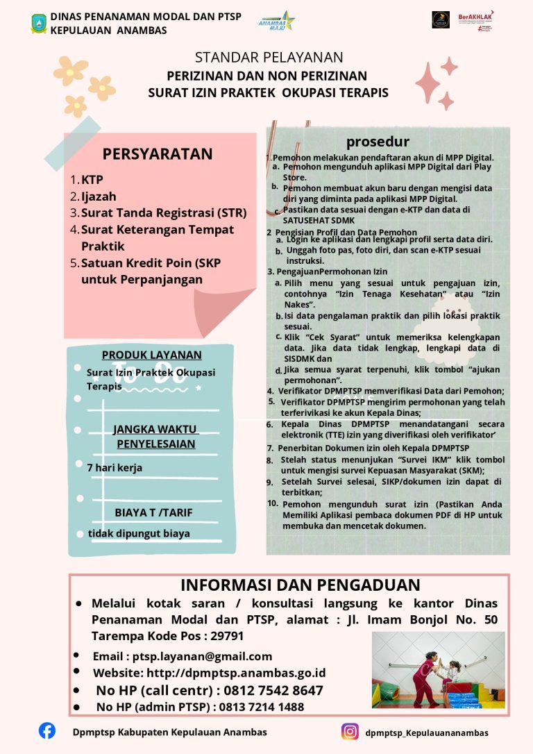 STANDAR PELAYANAN PERIZINAN DAN NON PERIZINAN SURAT IZIN KERJA TERAPIS WICARA | |